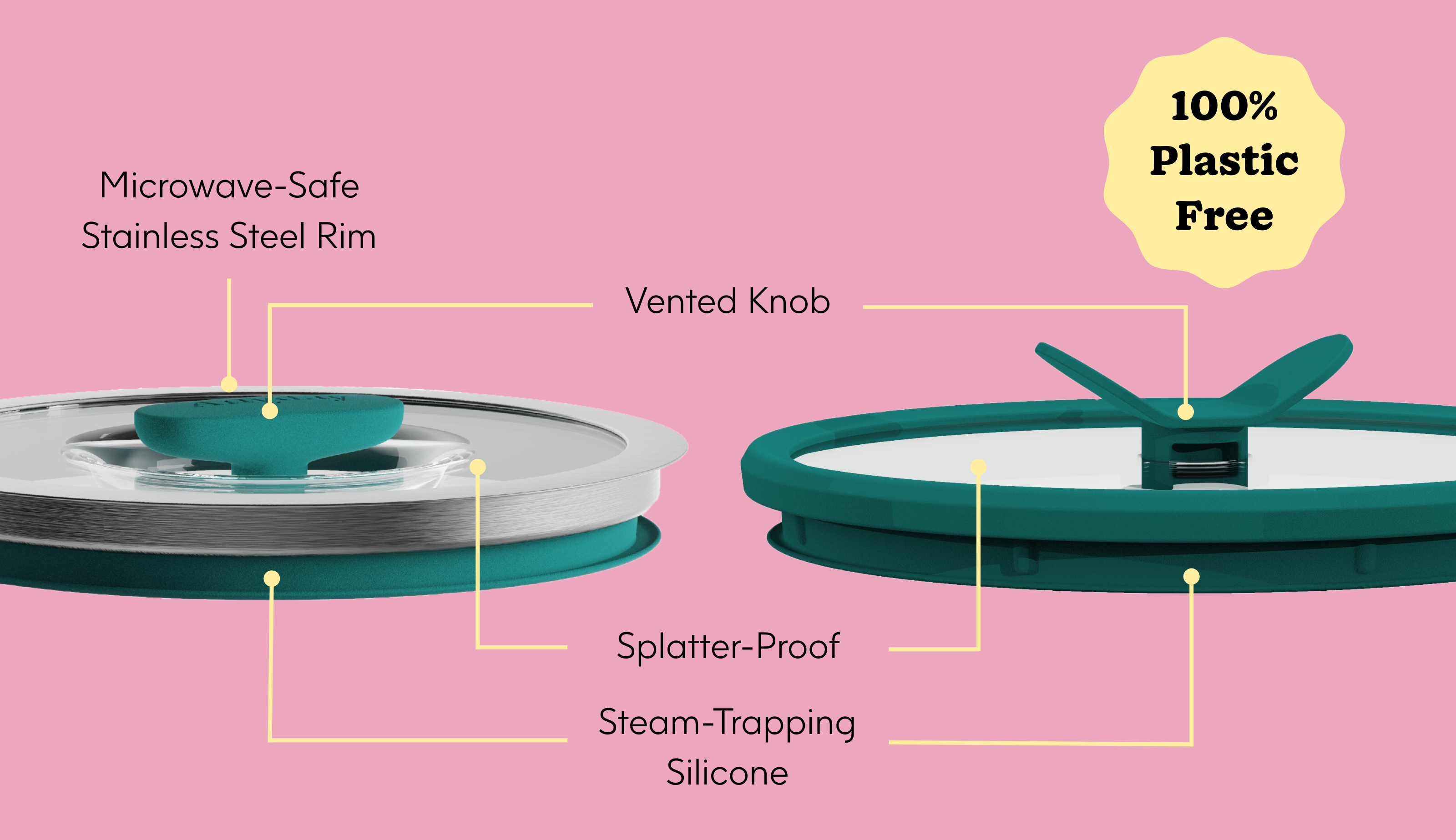 Our lids are made of glass with a vented knob that helps trap steam for faster, even cooking while also allowing excess steam to escape. This serves a dual purpose of keeping your food moist and preventing spills and messes. When not using for cooking and reheating, simply press the vented knob down for airtight food storage.