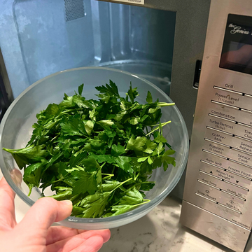 It's a good idea to rinse fresh herbs under cool running water to remove any dirt or debris before drying them in the microwave with Anyday dishes. However, be sure to pat them dry thoroughly before microwaving to avoid excess moisture.