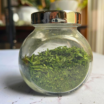 After drying herbs in the microwave with Anyday dishes, allow them to cool completely and then store them in either a small Anyday dish with the lid and knob in the closing position or a mason jar or spice container of your choosing. Keep the container in a cool, dark place away from direct sunlight to maintain freshness for up to six months.