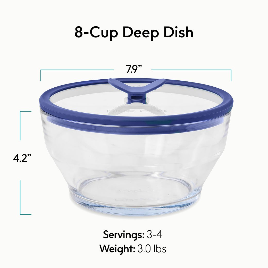 This durable clear glass food storage container with a vented glass lid also doubles as versatile microwave cookware. Ideal for reheating leftovers, steaming grains like rice, or meal-prepping large portions of food, this container transfers seamlessly from the microwave, to the fridge, to the freezer, to the oven, to the table, and even the dishwasher.