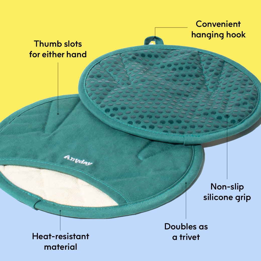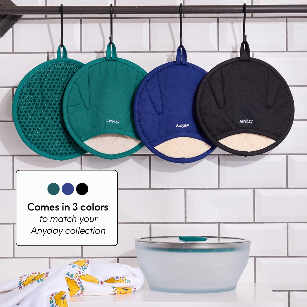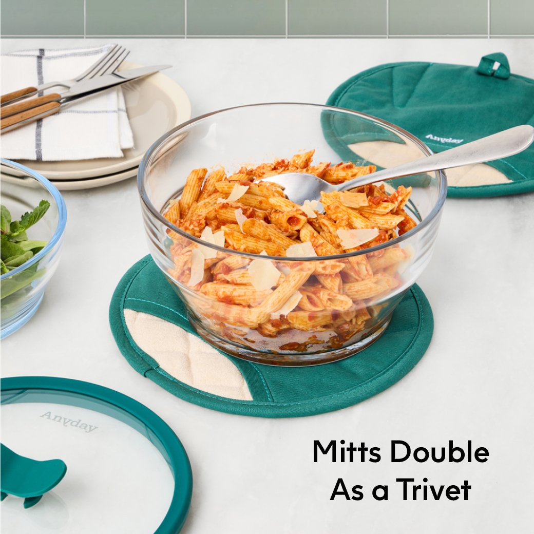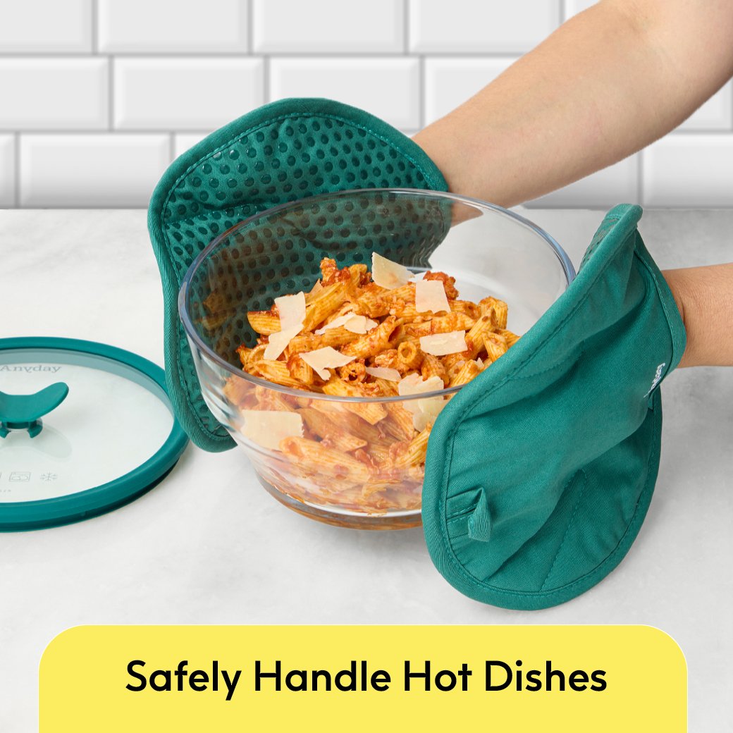 The name doesn't lie: You can truly use this pair of mitts on any hand! Slip them on to safely take your hot Anyday dishes out of the microwave after cooking. You can even use them as a pair of trivets to serve your delicious homemade meals.