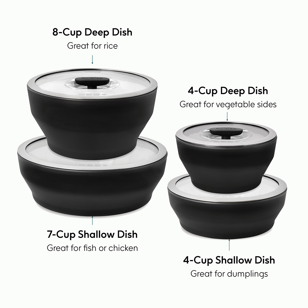 • Steam: Cook veggies, grains & proteins (from scratch) in the microwave at the push of a button