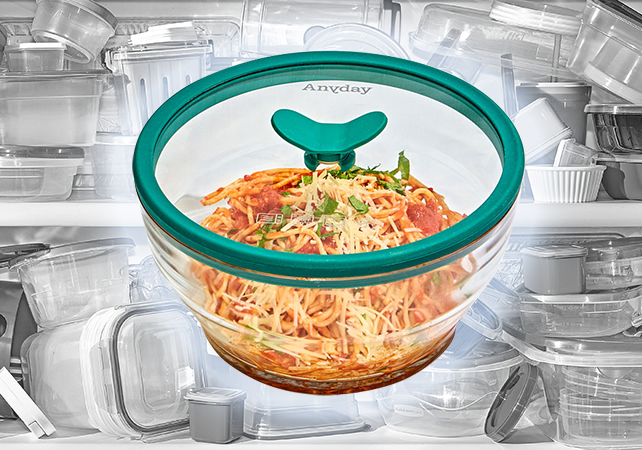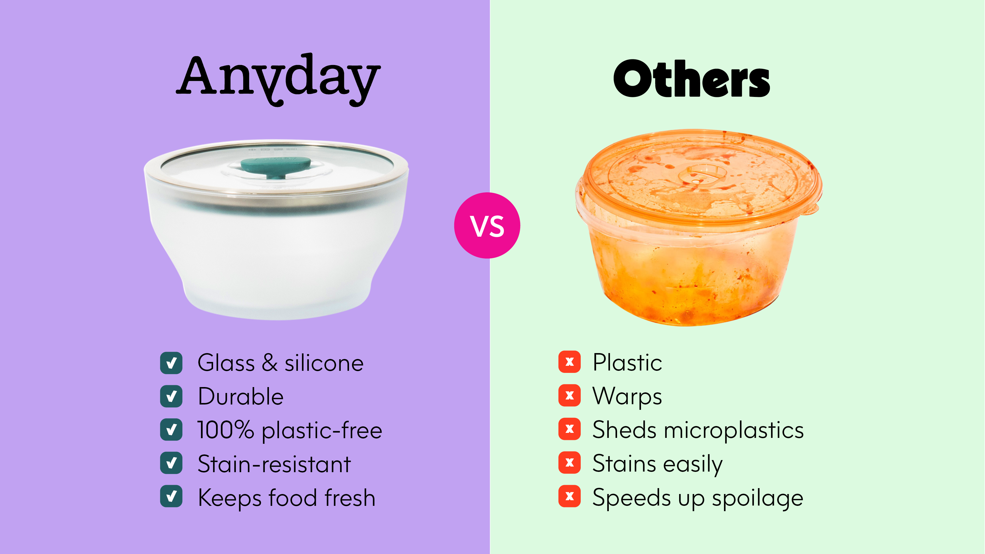 Ditch plastic. Upgrade to glass and silicone Anyday dishes.