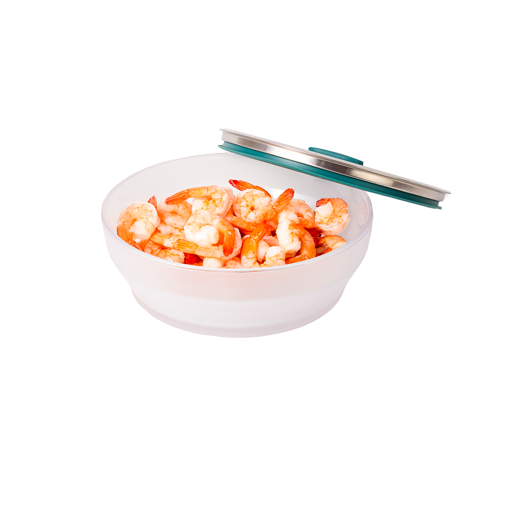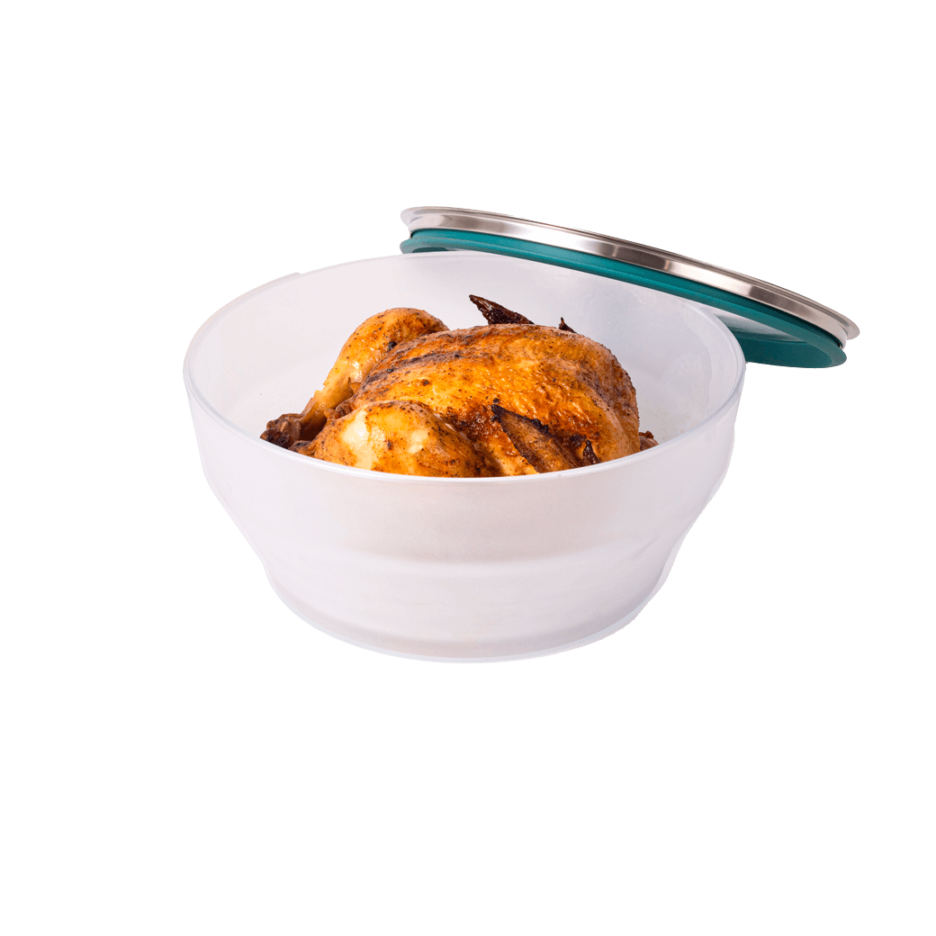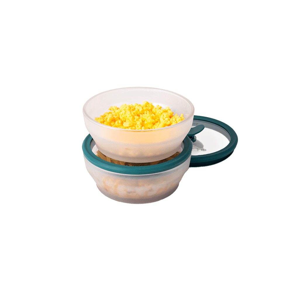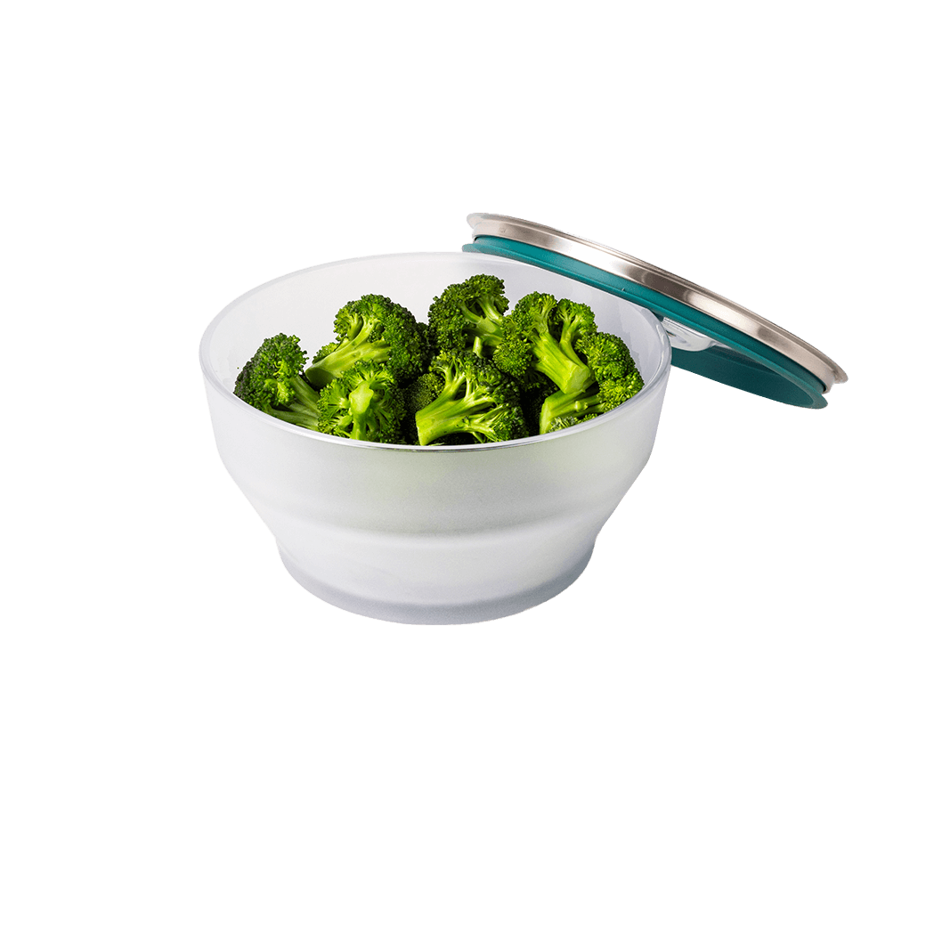 Our lids are made of glass with a vented knob that helps trap steam for faster, even cooking while also allowing excess steam to escape. This serves a dual purpose of keeping your food moistandpreventing spills and messes. When not using for cooking and reheating, simply press the vented knob down for airtight food storage.