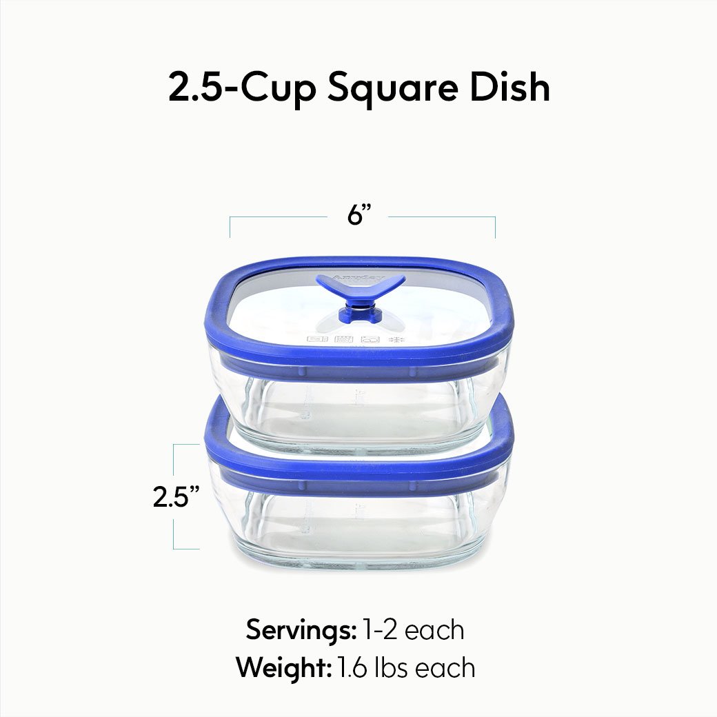 - 2.5 Cup Glass Square Dish (x2) + Lids