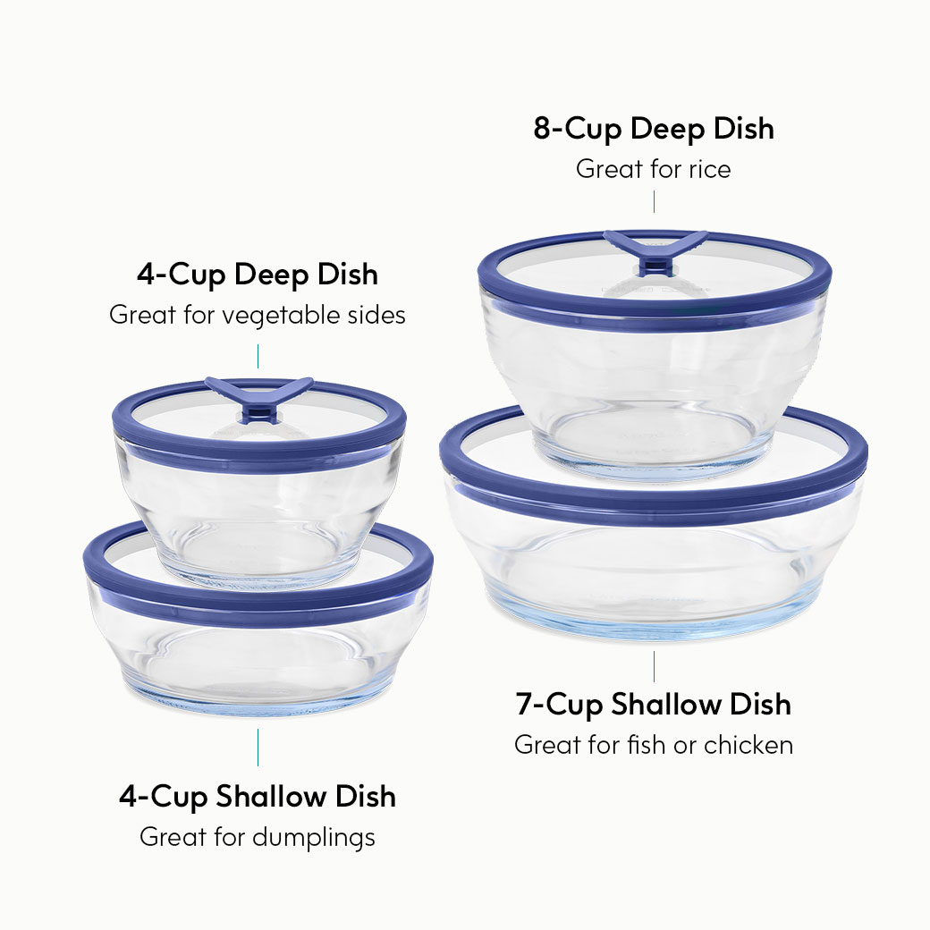 - 8-Cup Glass Round Deep Dish (7.9" D x 4.2" H, 3 lbs)