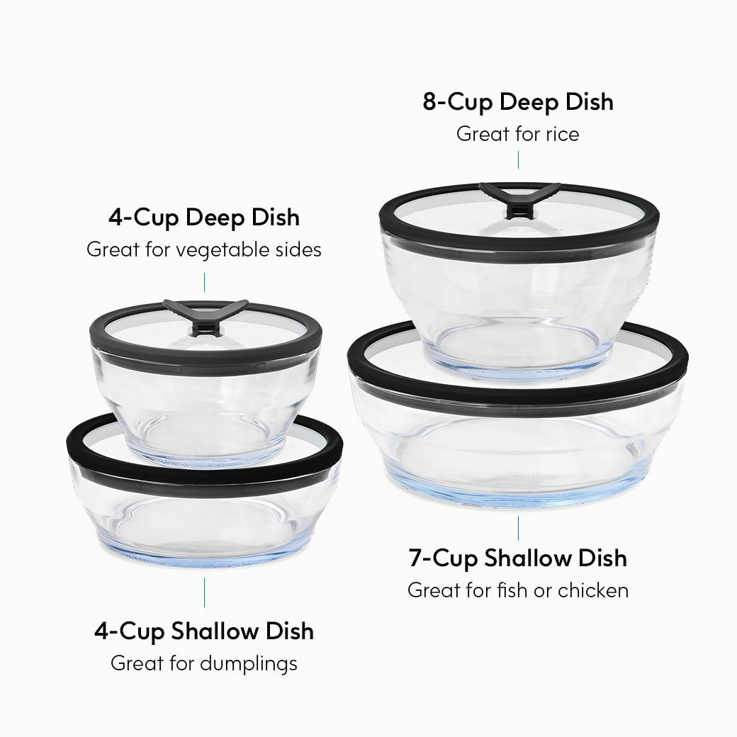 - 4-Cup Glass Round Deep Dish (6.3” D x 3.4” H, 2 lbs)