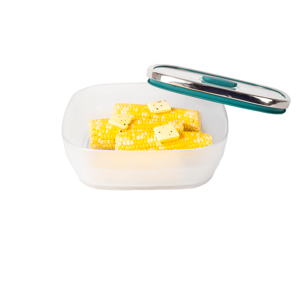 Our lids are made of glass with a vented knob that helps trap steam for faster, even cooking while also allowing excess steam to escape. This serves a dual purpose of keeping your food moistandpreventing spills and messes. When not using for cooking and reheating, simply press the vented knob down for airtight food storage.