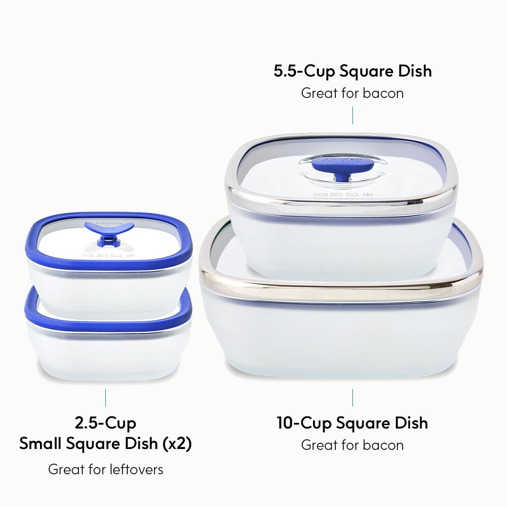 - 2.5-Cup Small Square Dish (6" W x 6" L x 2.7” H, 1.6 lbs)