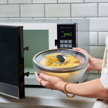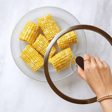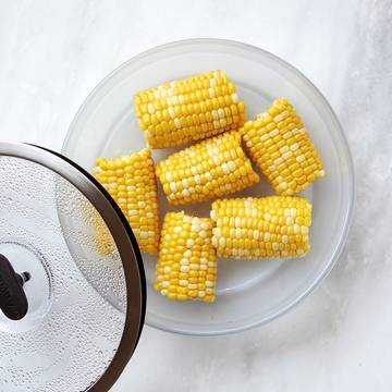 Microwaving frozen corn kernels is a breeze! Place them in an Anyday, cover them with the lid, and microwave for 2-3 minutes per ear.