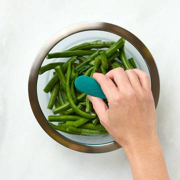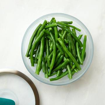 Microwaving canned green beans is a breeze! Drain the green beans and transfer them in an Anyday without any extra water. Cover them with the lid, and microwave for half the indicated amount or until heated through.