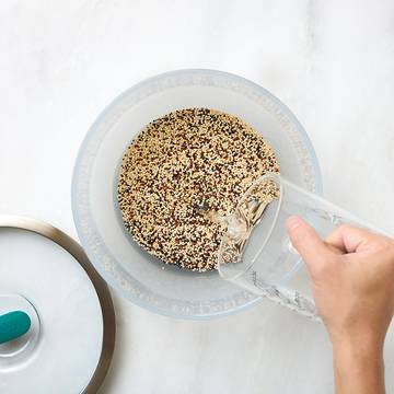 Once the quinoa is cooked, allow it to fully cool while uncovered. Once cool, transfer to the 1/2 Cup Anytime Trays, then cover with the lid and freeze for up to 6 months.