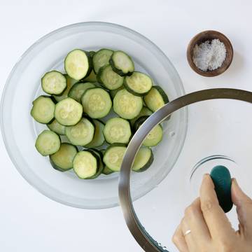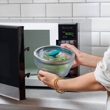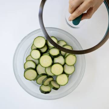 To freeze microwaved zucchini or squash, cook to crisp-tenderness, season to your liking, and let the slices cool completely. Transfer to a 1/2 Cup Anytime Freezer Tray, cover with lid, and store in the freezer for up to 1 month.