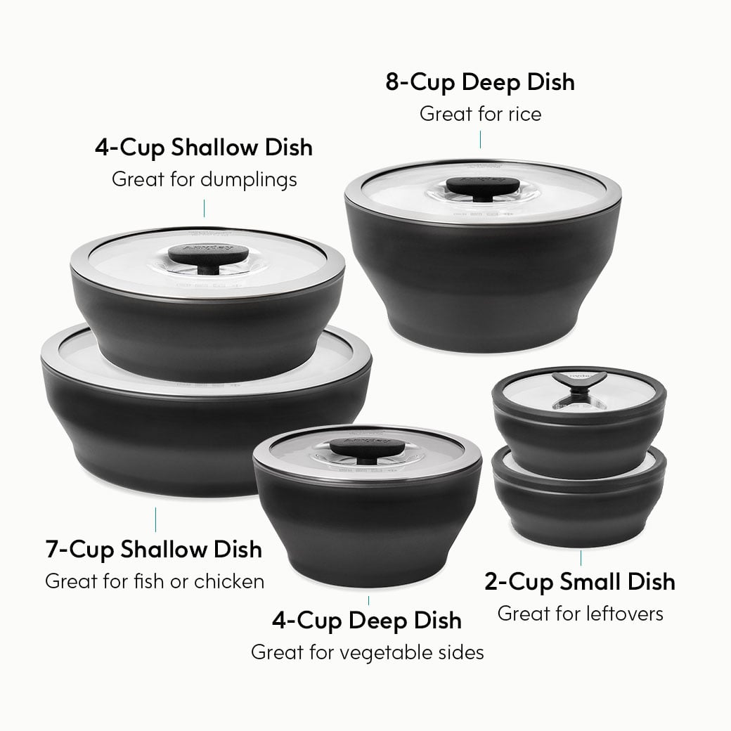 - Large Deep Dish (8 cups, 7.9" x 4.2", 3 lbs)