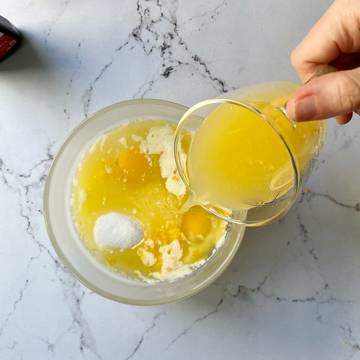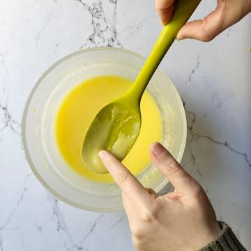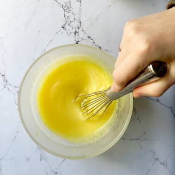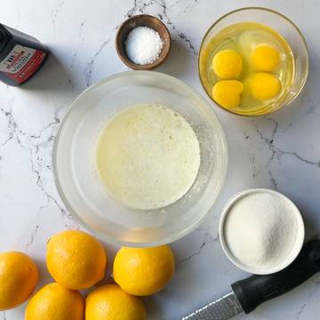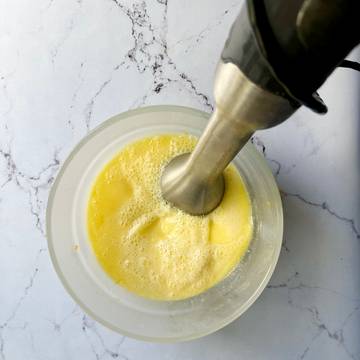 - Add the lemon juice, sugar, eggs, yolks, and salt in the Anyday dish and blend with an immersion blender until well incorporated. Using an immersion blender or regular electric blender is imperative to the success of the recipe.